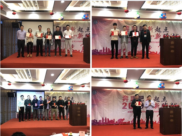 年度工作報告結(jié)束后,激動人心的時刻到來了,胡總、吳總等公司高層領(lǐng)導(dǎo)為獲得"年度優(yōu)秀管理者獎"、"年度優(yōu)秀宏森人獎"、"年度銷售團隊冠軍獎"、"優(yōu)秀員工獎"、"榮譽職工代表者獎"等獲獎?wù)哳C發(fā)了相應(yīng)的獎金與獎狀。